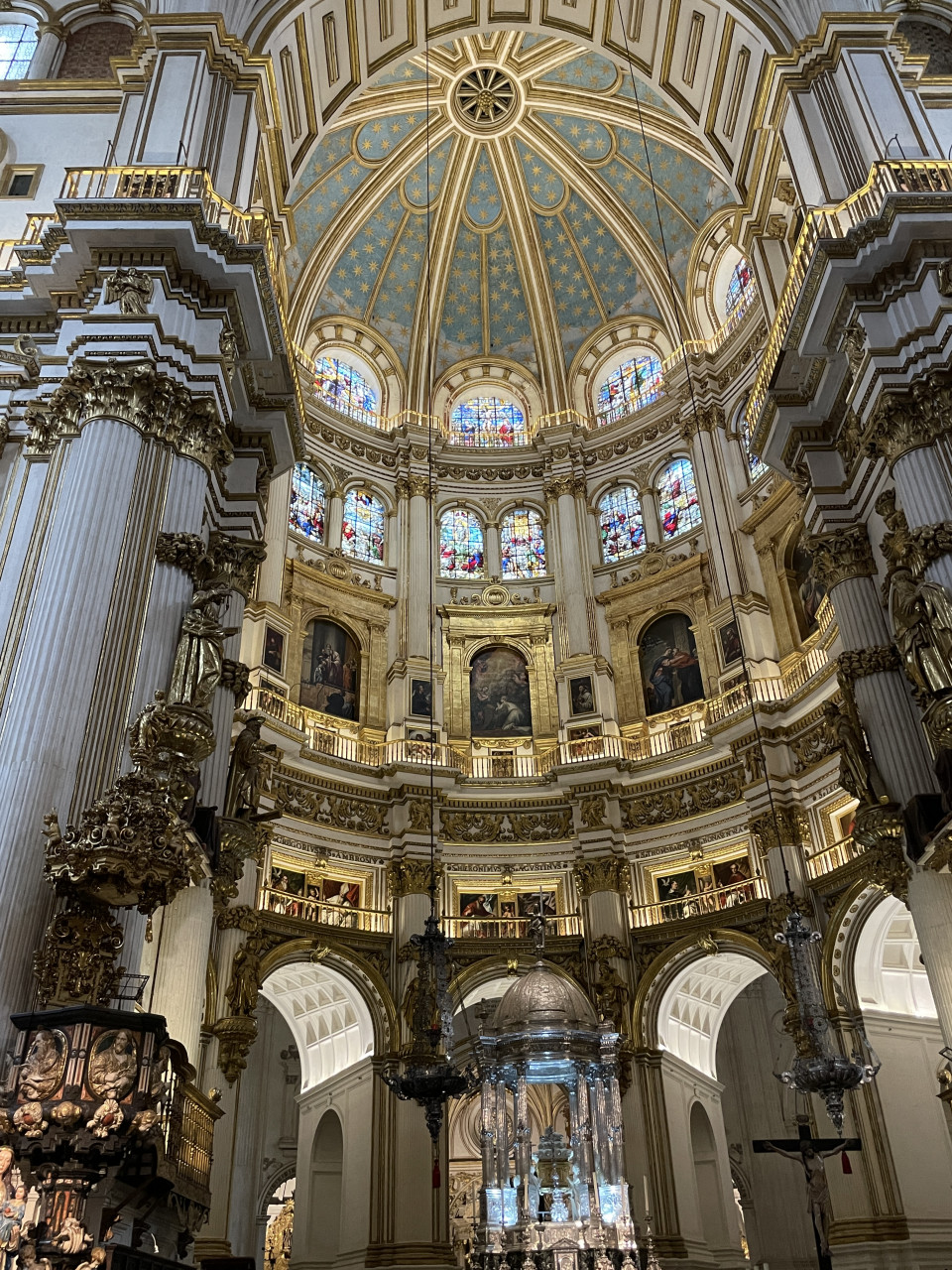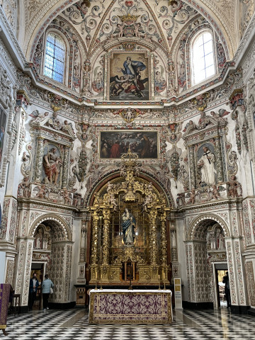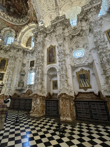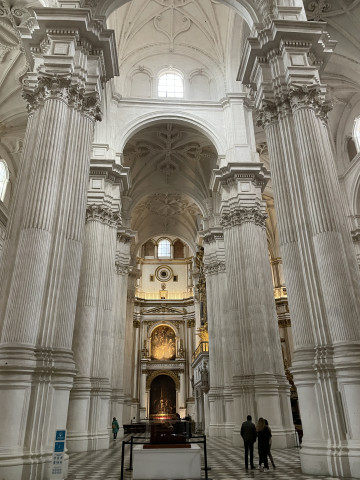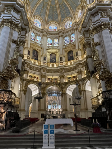 Die Kathedrale von Granada war für uns sehr beeindruckend. Beim Betreten fallen die weißen Wände, die lichte Weite und die große Höhe auf. Der gewaltige Bau hat eine Länge von 125 Meter und eine Breite von 65 Meter. Neben dem Hauptaltar sind auch die vielen Chor- und Seitenkapellen mit kostbaren Bild- und Schnitzwerken geschmückt, die verschiedenen Heiligen geweiht sind.