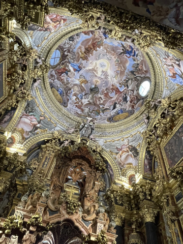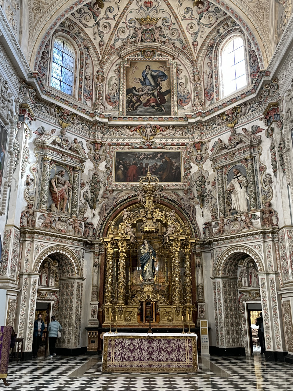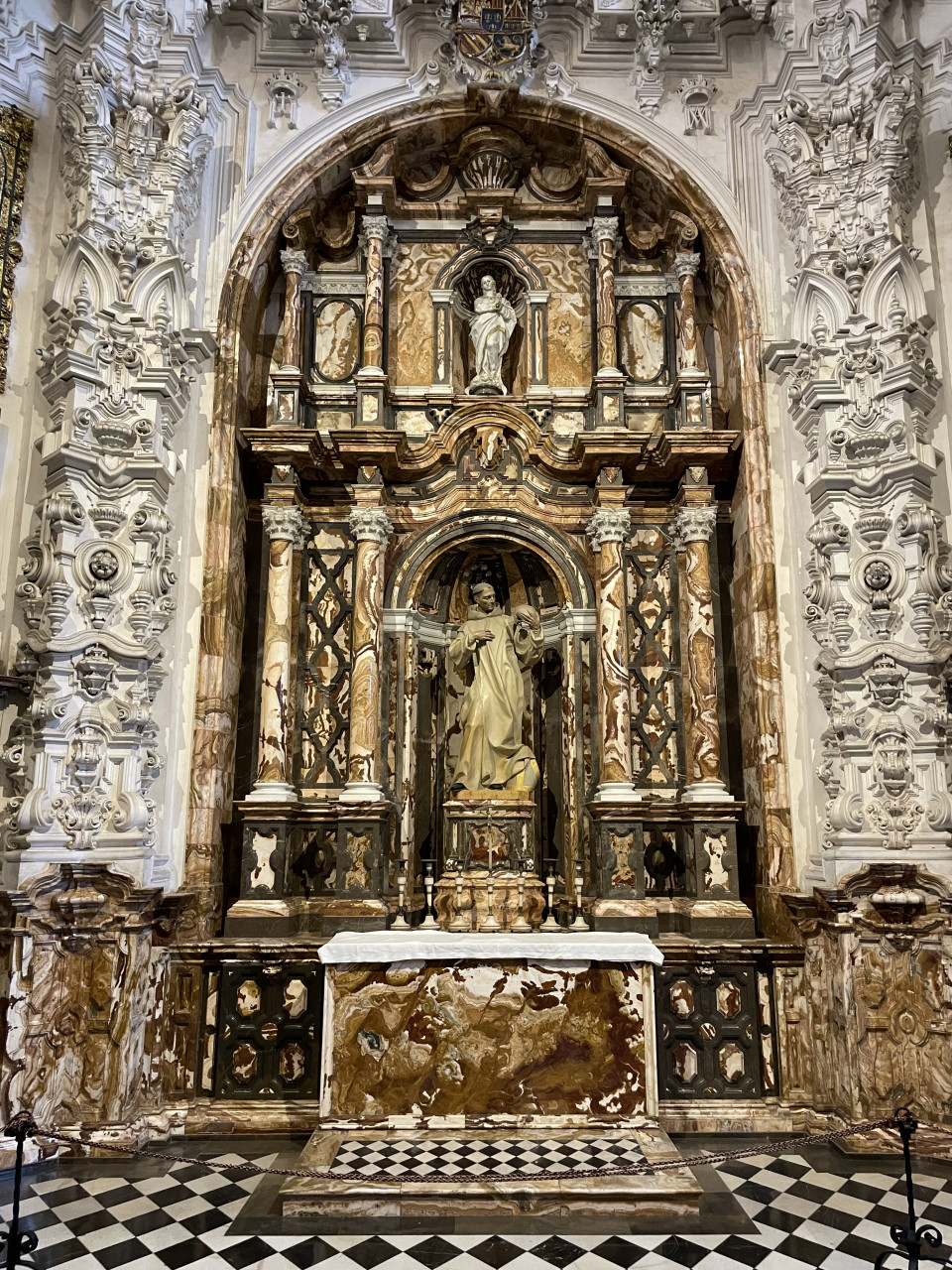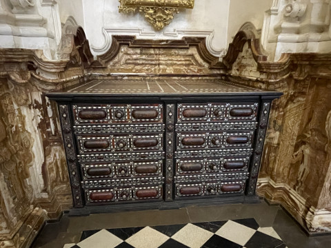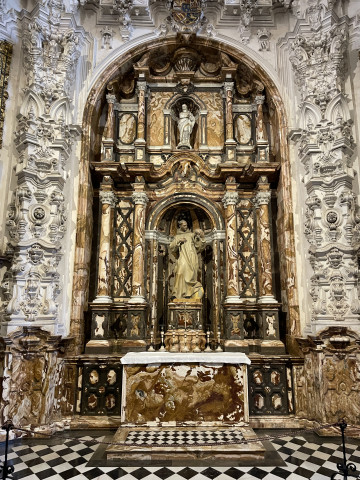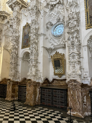 Besonders beeindruckend sind die beiden Sakrophage aus weißem Carrara-Marmor in der Mitte der königlichen Kapelle. Nicht weniger eindrucksvoll ist der Hochaltar mit vielen Darstellungen aus biblichen Szenen. Laut Führer bringt die Umsetzung eines solchen Kunstwerks die Zusammenarbeit einer ganzen Gruppe mit sich. So wurden verschiedene Künstler für den Entwurf, die Umsetzung, die Vergoldung, für das Sgarfitto und die dekorativen Bildhauerarbeiten beauftragt.